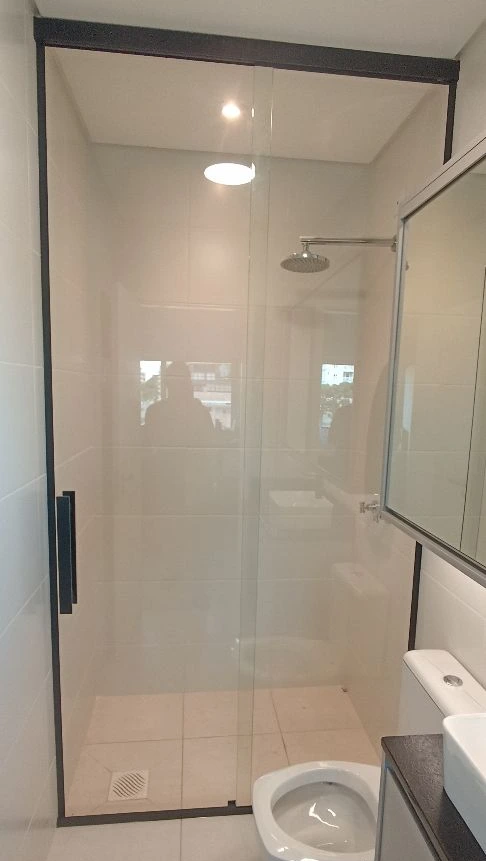 O clássico Box de Vidro Temperado 8mm. Disponível nas versões Box Frontal (De Correr) ou Box de Canto (Em L). A opção com melhor custo-benefício e alta durabilidade.